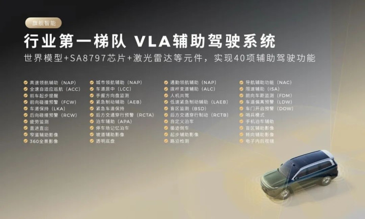 这些参数代表着什么呢?如果对比现在智能座舱通常采用的 8295 芯片,CPU、GPU 算力都有 2 倍以上的提升,NPU 算力更是有 10 倍以上的提升。这也就意味着,8797 芯片用于智能座舱,能够有更高的流畅度,并支持更长时间的 OTA 更新;用于辅助驾驶,能够支持 VLA(视觉-语言-动作)模型上车。