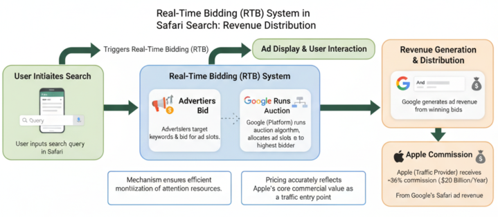 这套机制确保了注意力资源以最高效率转化为商业收入。据法庭文件披露,谷歌支付给苹果的分成比例高达其通过Safari产生广告收入的36%,这一定价精准反映了苹果流量入口的核心商业价值。