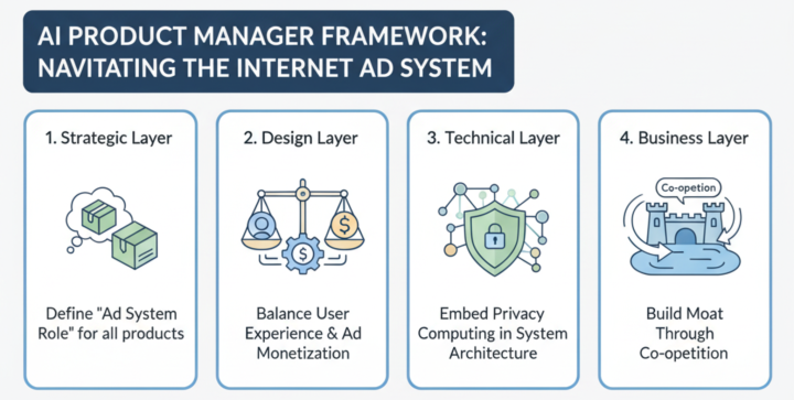 对AI产品经理而言,互联网的广告系统本质不是批判的靶子,而是必须深刻理解并用以指导决策的现实环境。从苹果与谷歌的案例中,可提炼出以下关键行动框架: