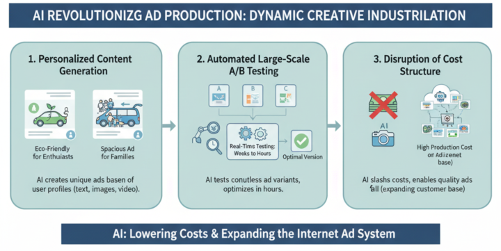 成本结构颠覆:传统广告制作成本高昂,AI生成能大幅降低创意成本,让中小广告主也能使用高质量广告素材,扩大了整个广告系统的客户基数。